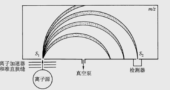 原理介绍:质谱是顺利获得对样品电离后产生的具有不同质荷比(m/z)的离子来进行分离分析的。先将待分析样品变成气态,在具有一定能量(50~100eV)的电子束轰击下,生成不同m/z的带正电荷的离子,在加速电场的作用下成为快速运动的粒子,进入质量分析器,这些粒子在电场与磁场作用下,按其质量与电荷的比值(质荷比)大小分开,进入分析器分离并得到质荷比以及相对的丰度。在进行质谱分析时,一般过程是:顺利获得气相色谱将样品引入并进行气化。气化后的样品引入到离子源进行电离。电离后的离子经过适当的加速进入质量分析器,按不同的m/z 进行分离。然后到达检测器,产生不同的信号而进行分析。