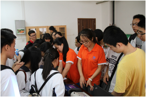 志愿者和科研工作者们全程无休地为参观者循环讲解,耐心答疑,顺利获得对各个实验室的实地参观,结合室内空气污染特征展示、海报宣传、在线监测仪器讲解;光催化产品展示、光催化实验去除大气、水中污染物的奇妙小实验等环节,使公众对气体及颗粒物的监测、分析、控制手段等方面均有了深入认识。有同学感叹说:“噢!原来每天手机上显示的PM2.5污染指数都是从这些仪器里测出来的啊!”,更有同学在观摩光催化技术对大气污染物的去除的实验时两眼放光,意犹未尽。经过此次科普活动的举办,让公众真正亲身体会科学的奥秘,培养中学生们一种科学精神,很好地让公众认识并理解科研工作,更为科研产品与现代都市生活结合进行了一次很好的科普。本次科普活动已划上圆满的句号,但科普仍然在路上,着力提高科普工作成效,我们不断在努力。